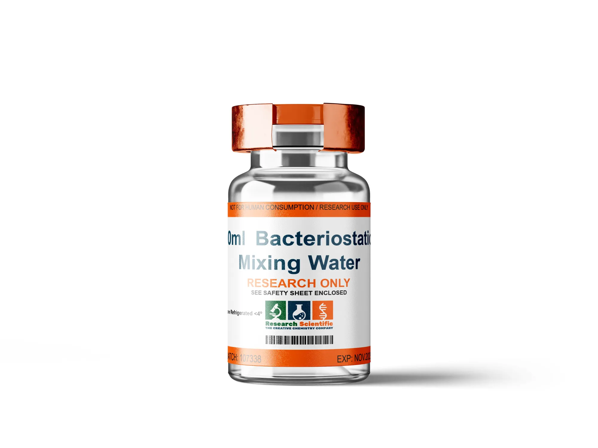A sterile solution containing bacteriostatic agents, ideal for reconstituting peptides and maintaining sterility during research applications.